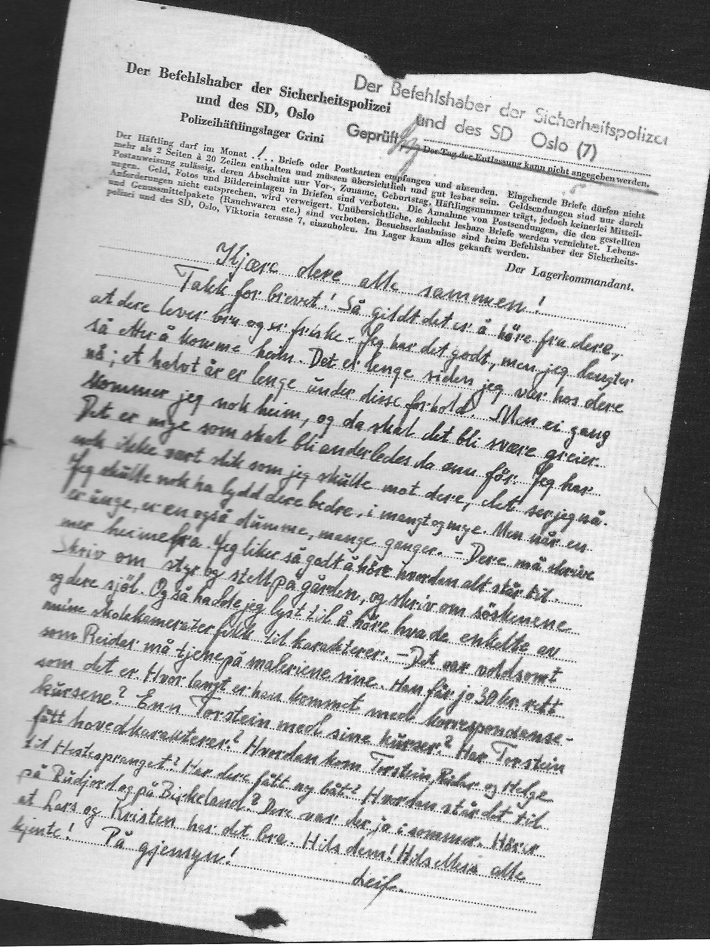 Men plutselig gikk døra opp og en av de eldre vokterne kom inn med en Bibel i handa. Forunderlig nok så var det min egen Bibel han kom med. Den som jeg hadde fått til konfirmasjonen hjemme i Farsund, og som mor hadde stappet ned i bagasjen min da jeg ble arrestert. Men den ble straks konfiskert av nazistene.