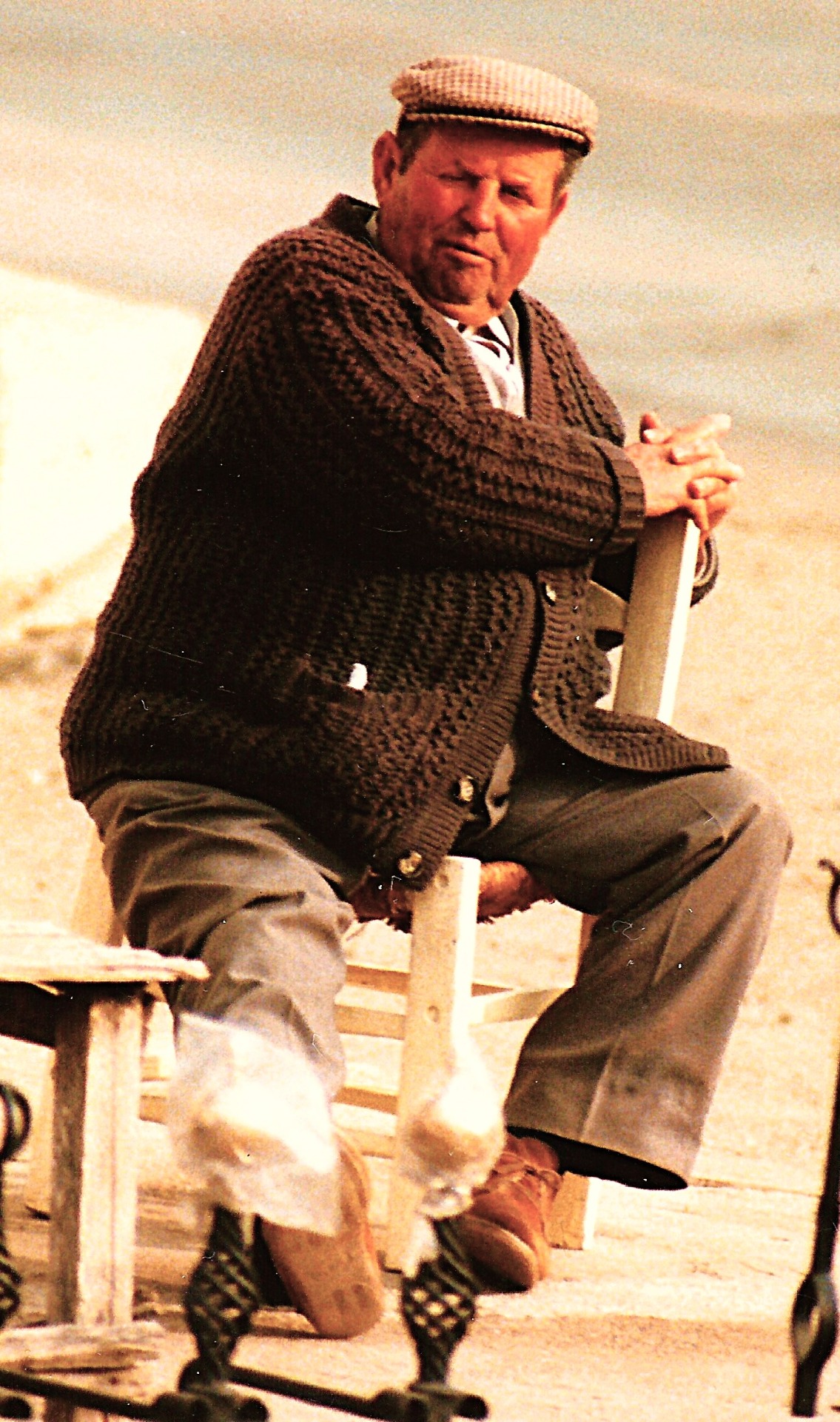 En eldre herre på benken sitter