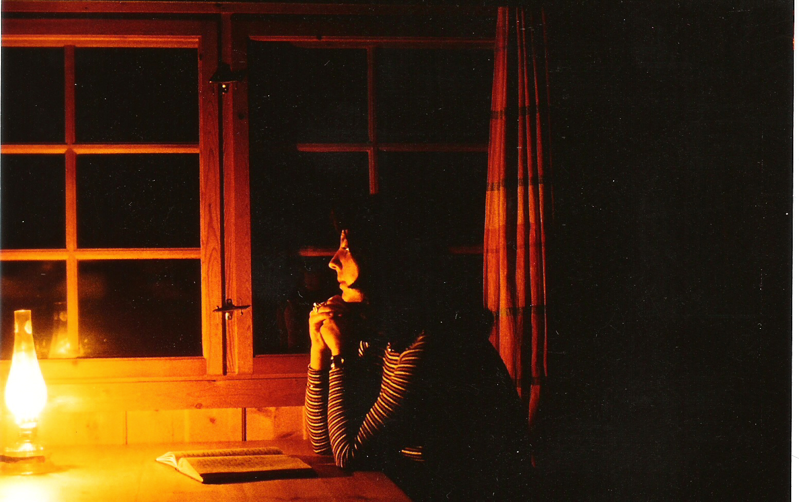 Og vi merket ikke at stearinlyset sluknet før vi kjente den lukten som er så karakteristisk når et stearinlys slukner. Når vi tittet på lyset var det bare en rykende veke igjen. Vi hadde ikke merket at det hadde gått ut fordi det ikke var blitt helt mørkt i rommet. Og nå var det bare en rykende veke som så vidt glødet. Hva som forårsaket at lyset sluknet vet jeg ikke, for det var fortsatt mye igjen av stearinlyset. Kanskje var det et vindblaff som kom idet vi et øyeblikk åpnet verandadøren som var årsaken til at det sluknet. Vi hadde i alle fall vært så opptatt med alt det vakre utenfor vinduene at vi merket ikke at lyset sluknet.
