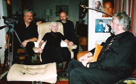 Fra et intervju og TV-opptak hjemme hos Blanche. På hennes høyre sider sitter sønnen Peter Major.